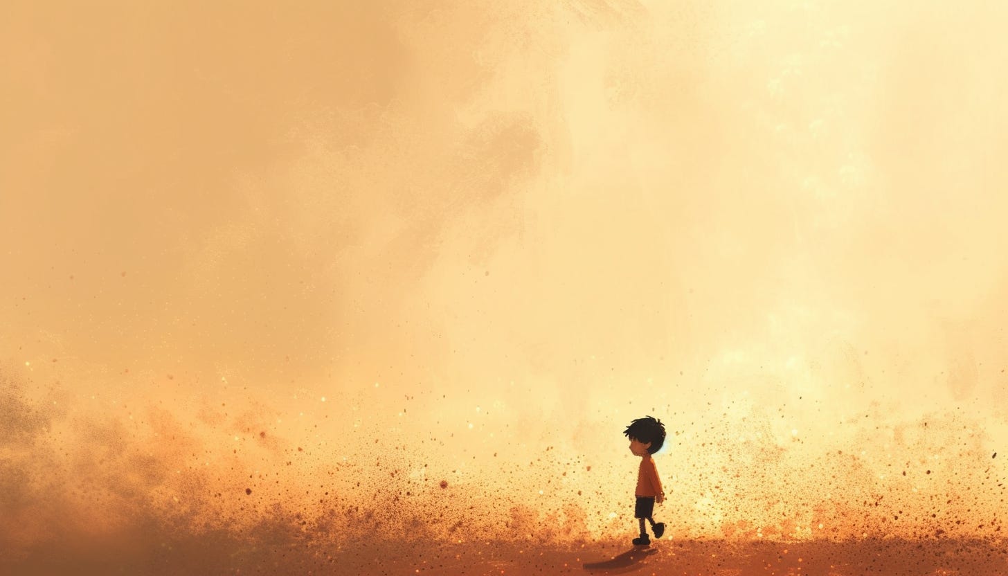 A boy left alone in the empty space of the unknown