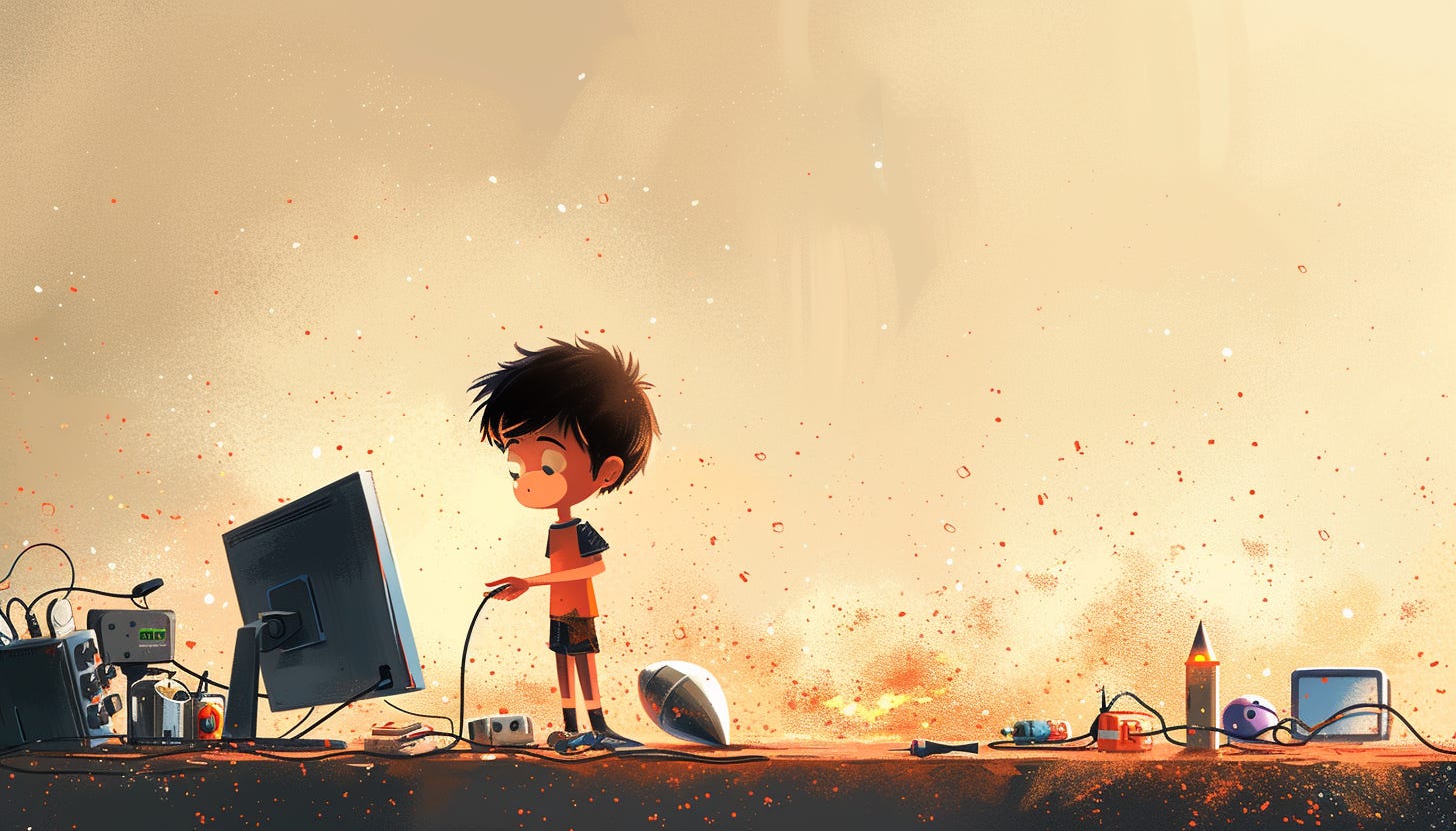 A boy tinkering things